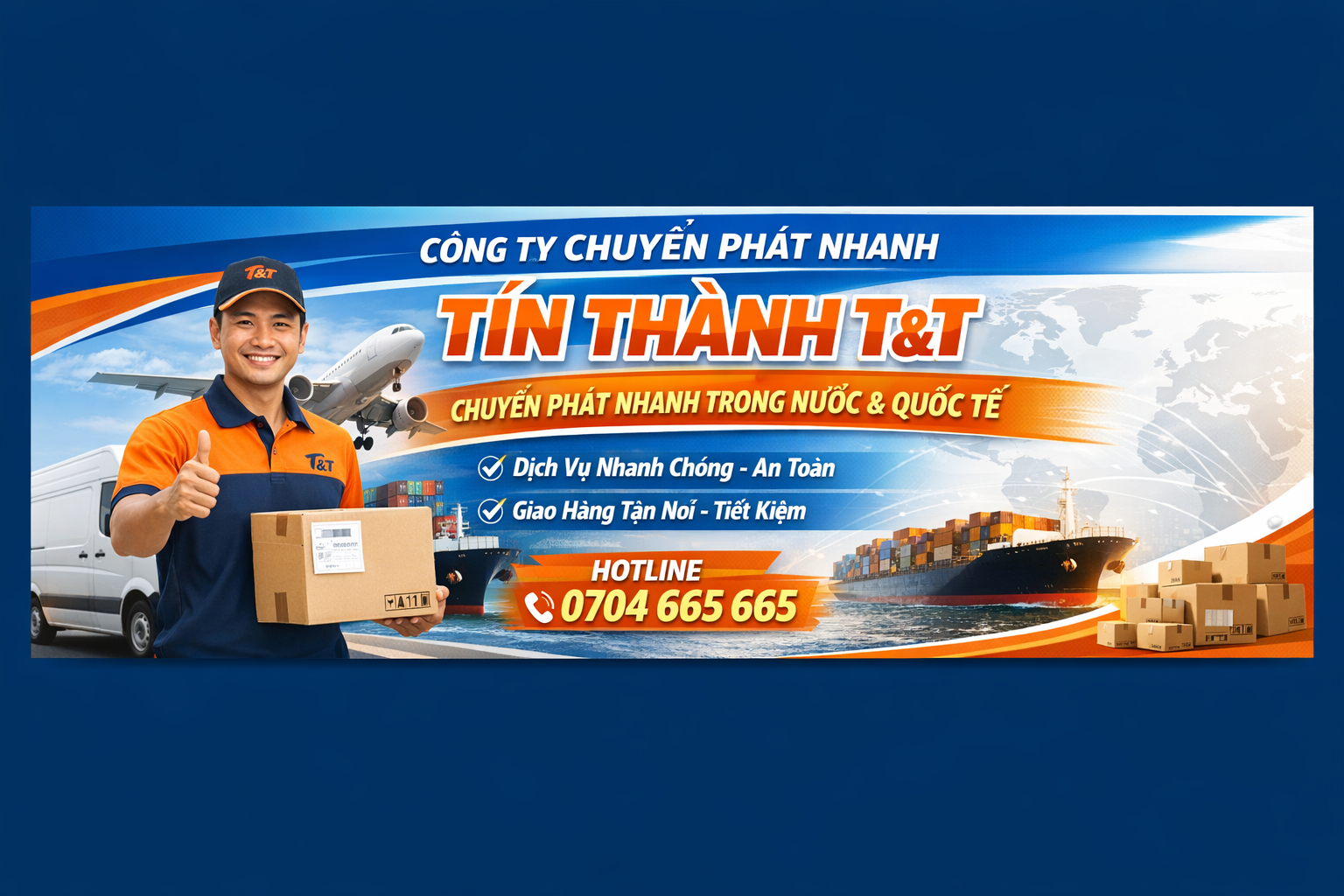 Với phương châm “Nhanh chóng – An toàn – Hiệu quả”, CÔNG TY TNHH VẬN CHUYỂN TÍN THÀNH T&T cam kết mang đến dịch vụ vận chuyển chuyên nghiệp, đáng tin cậy, góp phần hỗ trợ khách hàng tối ưu hoạt động kinh doanh.